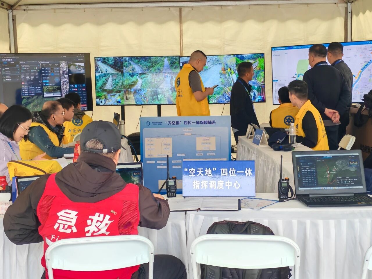 科技守護生命,更體現在細微處。開賽一個多小時后,系統發出預警:運動員楊先生軌跡異常,偏離賽道。部署于地面的AI監控系統迅速響應,配合指揮中心在2分鐘內便通過實時畫面完成核查,并利用語音系統進行遠程問詢,根據運動員的現場示意快速引導其回歸正軌,成功化解潛在風險。