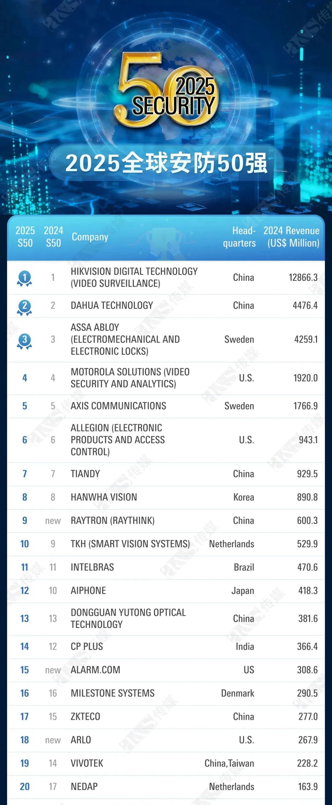 天地偉業(yè)蟬聯(lián)全球安防50強第七名